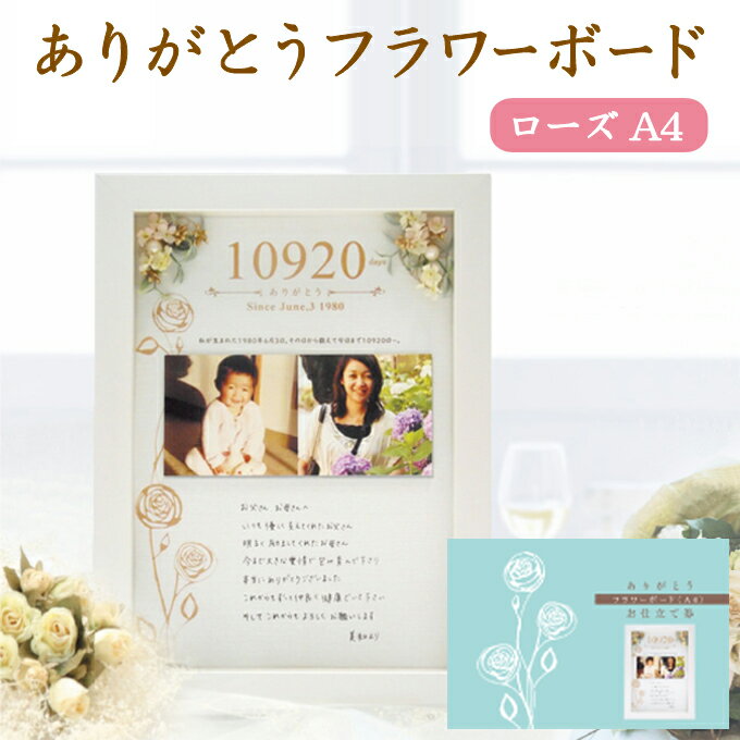 ありがとうフラワーボード ローズ A4 お仕立て券 結婚式 両親プレゼント 両親贈呈用 名入れ フォトフレーム 写真立て 披露宴 メモリアル 記念品 お祝い 贈答品 父親 母親