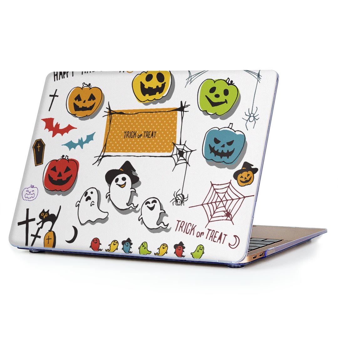 MacBook Air 13inch 2018 専用 デザインハードケース A1932 Apple マックブック エア ノートパソコン カバー ケース ハードカバー クリア 透明 アクセサリー 保護 015414 ハロウィン カボチャ お菓子 英字 おばけ