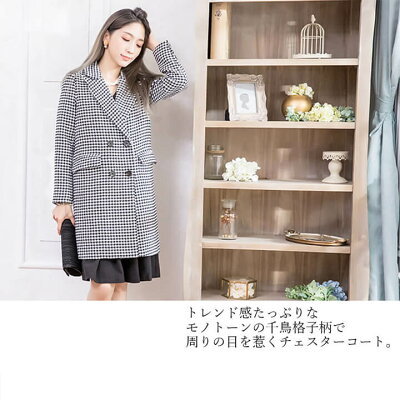チェスターコート チェスター アウター コート 千鳥格子柄 千鳥柄 パーティー ポケット キャバ ハーフ丈 レディース 黒 白 ダブルボタン 二次会 女子会 大きいサイズ有 冬 秋 10代 20代 30代